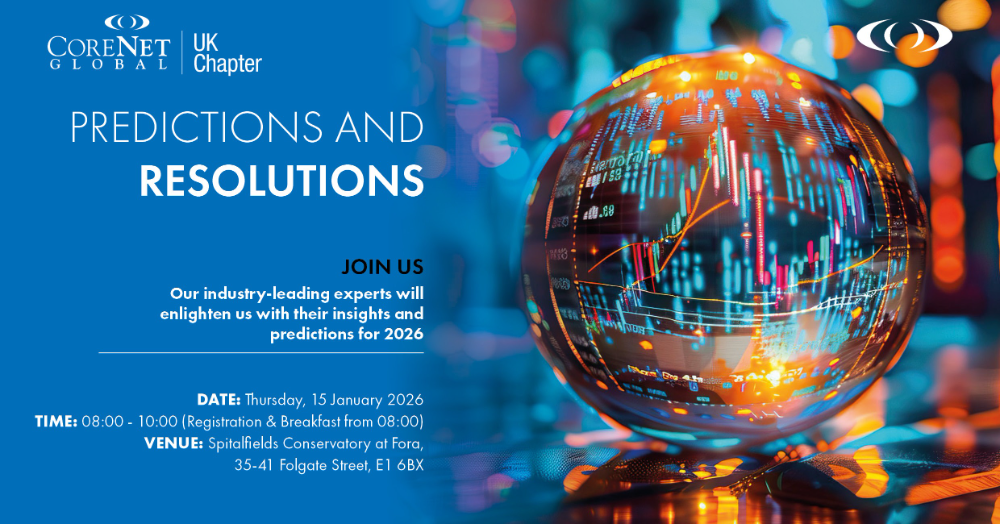 To comply with the UK and EU General Data Protection Regulation (UK & EU GDPR) we are contractually obliged to process your data to make all necessary arrangements regarding your attendance at or participation in the event. We will communicate with you only in respect of this event and will only forward your details to those who require them in order to produce the event (e.g. venues, caterers, speakers, sponsors). Your name and company will appear on the delegate list. Your photo, if taken, may be shared on social media by other attendees and may appear on CoreNet's social media streams, website or in marketing literature. By clicking 'Next' below, you consent to the above. To read the full Privacy Notice, please click here.